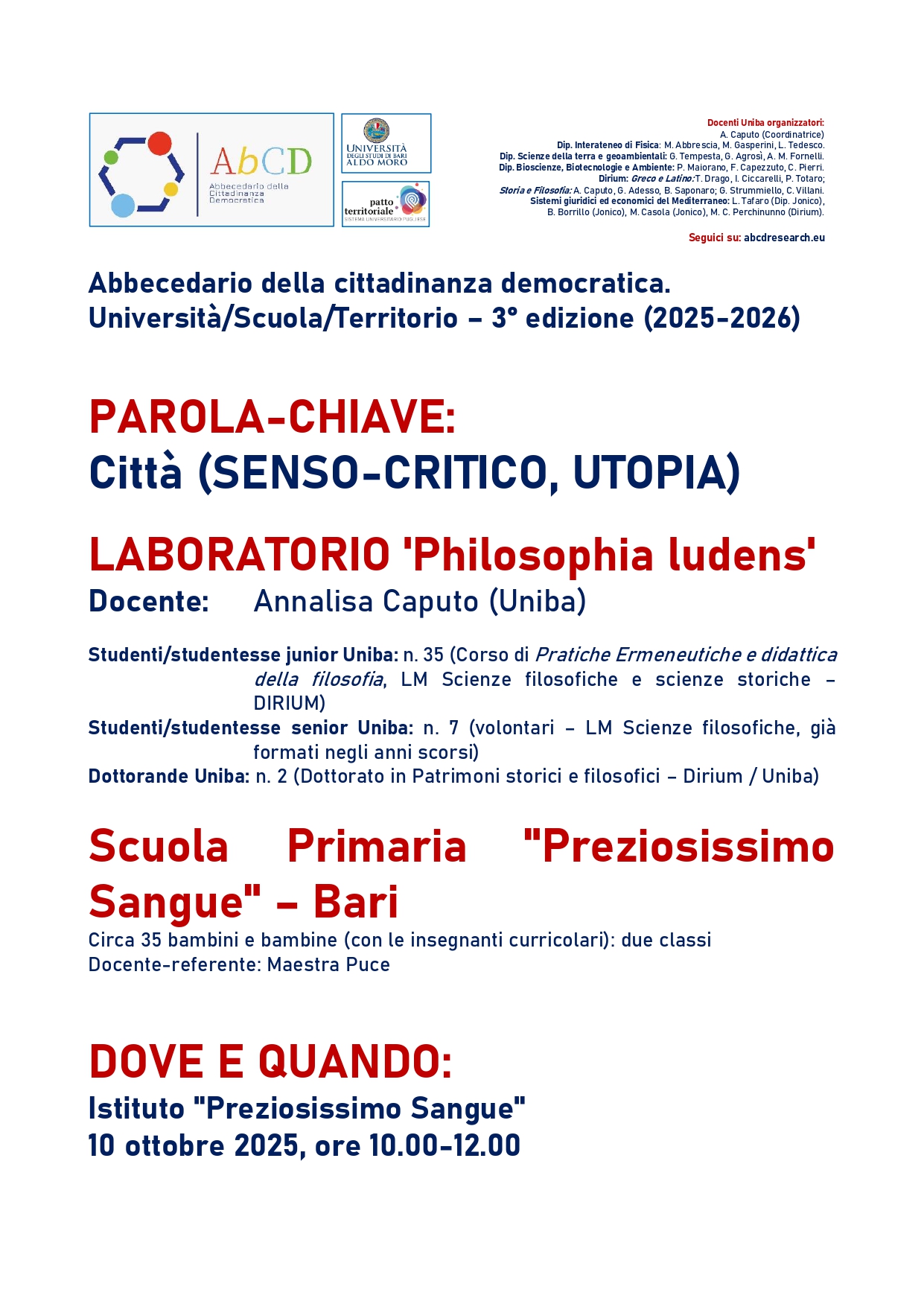Laboratorio “Philosophia ludens” – Città (Senso-critico, Utopia)